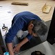 台中塑膠地板鋪設時,先把地板邊上的槽內均勻地塗抹上膠,然後把另一塊地板對準槽口安裝進去。接著使用專業方磚抵住靠外一側,並用榔頭敲擊方磚,使地板與地板之間縫隙縮小。
